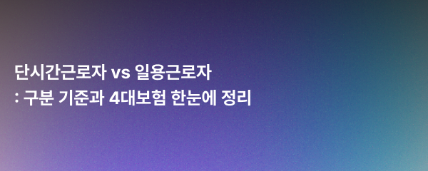 이번 글에서는 초단시간근로자를 제외한 단시간근로자의 정의부터 4대보험 적용 기준, 그리고 일용근로자와의 차이점까지 자세히 살펴보겠습니다.