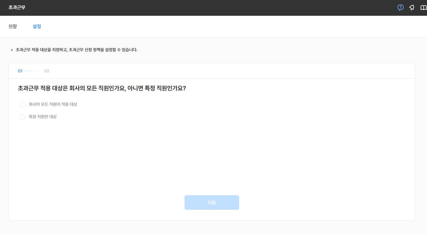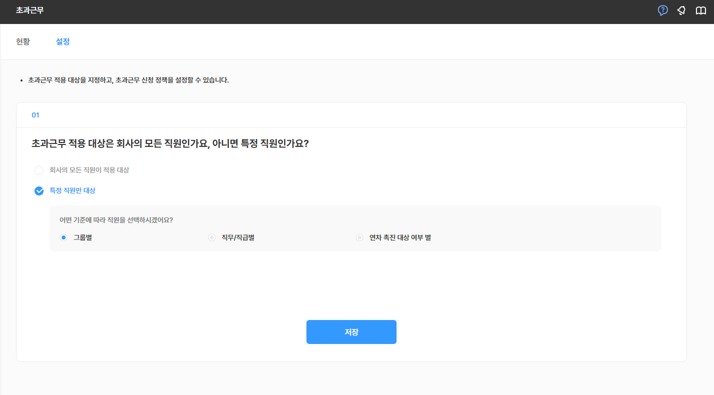 2. 초과근무 적용 대상을 설정하세요.