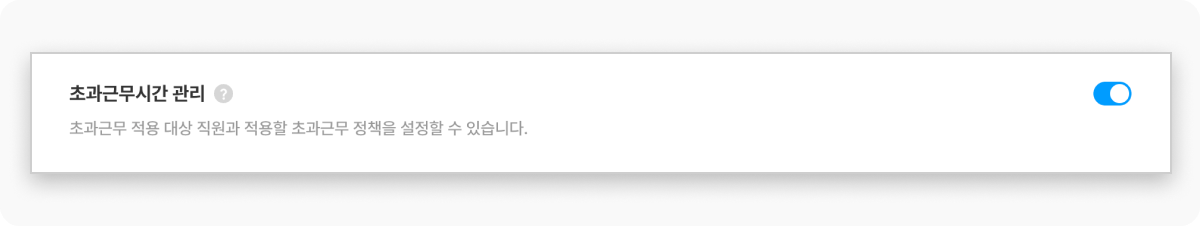 [초과근무시간 관리] 기능을 사용하면 초과근무 정책을 적용할 대상 구성원과 초과근무 신청 정책을 설정할 수 있습니다.